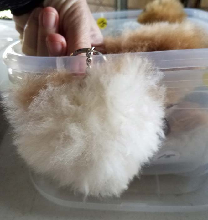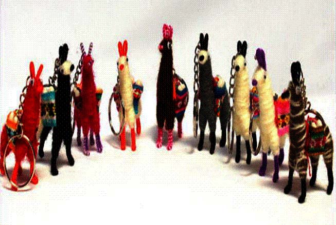 These alpaca shaped (wrapped in alpaca yarn) keychains are a favorite item by peope who visit our farm. They are so colorful! |