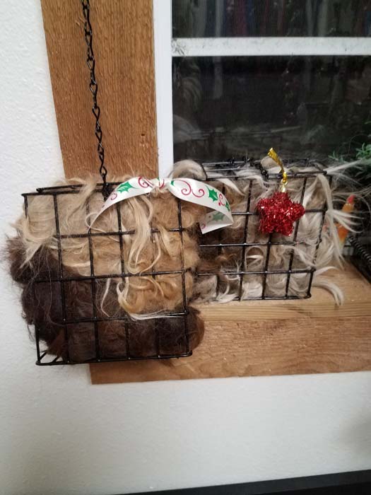 This vinyl coated wire cage is filled with alpaca fiber which birds and squirrels love to line their nests. Ready to hang in trees, shrubs, or even a shepherd’s hook in front of a window. This makes for a unique gift for anyone that loves mother nature! |